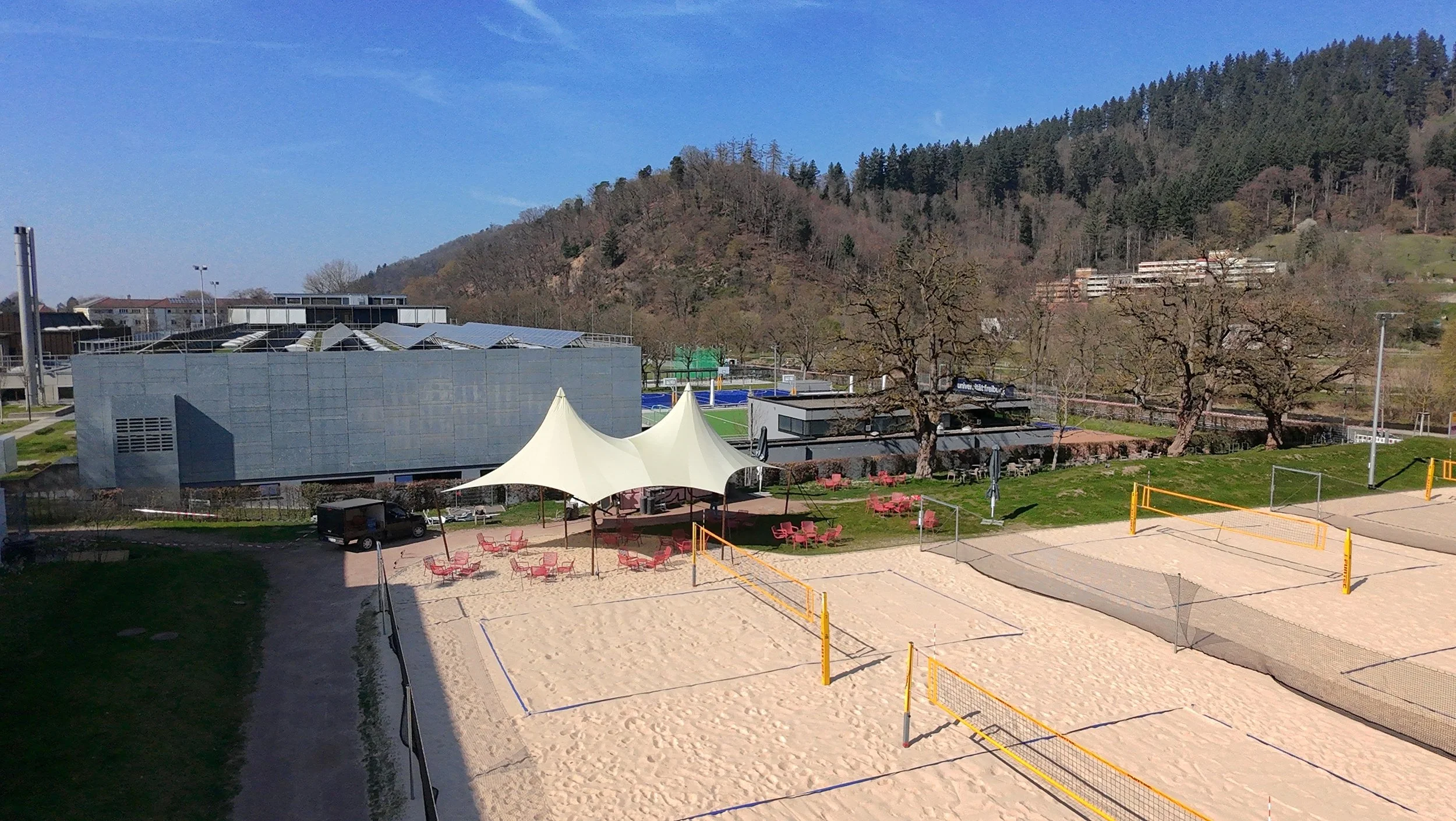 Freiburg im Breisgau ist bekannt für seine vielen Sonnenstunden. Was für Touristen ein Segen ist, stellt Gastronomen oft vor logistische Herausforderungen. Das HOKK Hotel und Restaurant wollte seinen beliebten Beach-Volleyball-Bereich am Kiosk aufwerten. Bisher fehlte es dort an einer ansprechenden und gleichzeitig funktionalen Überdachung. Gäste wollten das Spiel verfolgen, einen Drink genießen oder einfach im Sand entspenden, wurden aber oft von der direkten Sonneneinstrahlung abgeschreckt.
